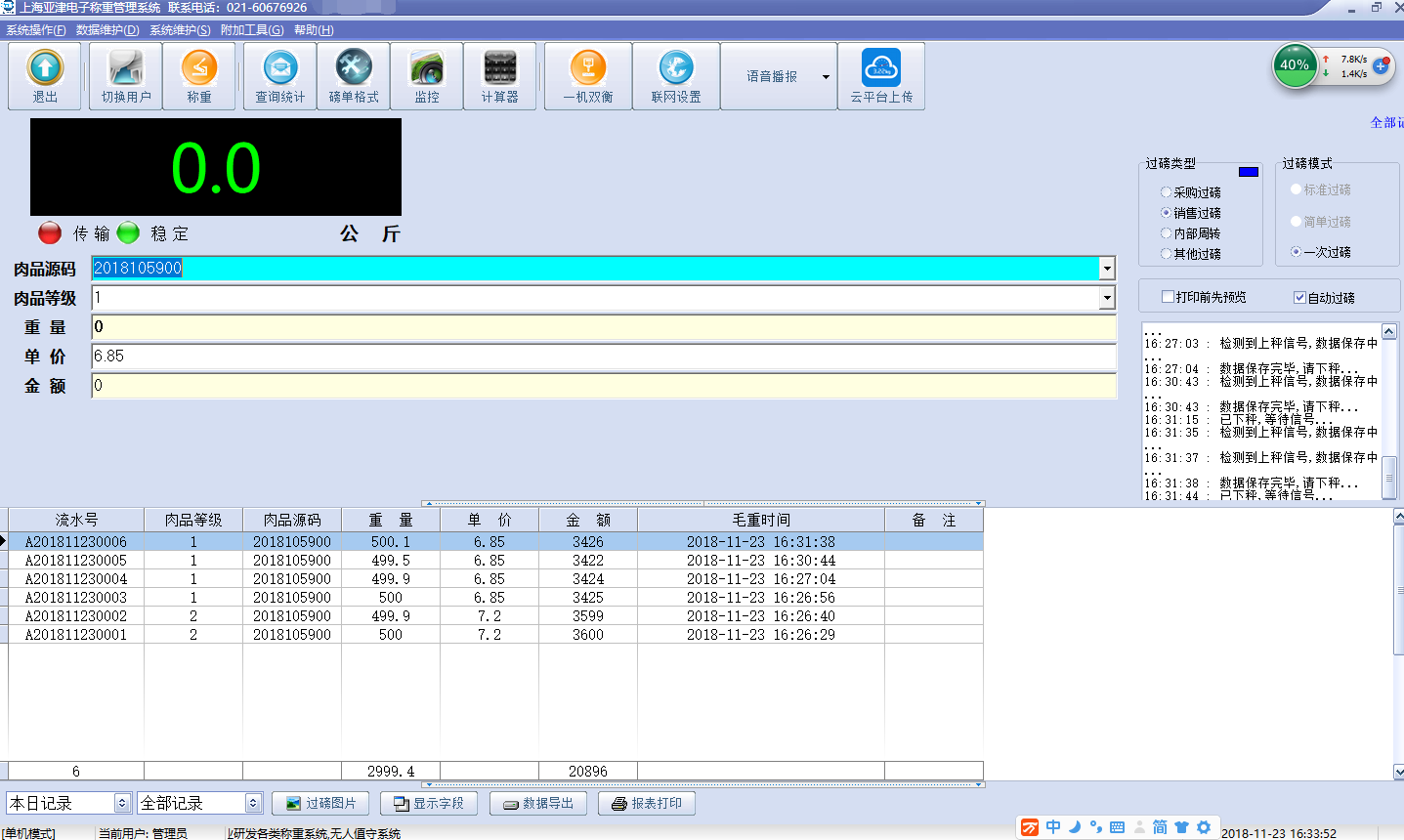 亞津肉食品出入庫(kù)智能稱(chēng)重管理軟件
