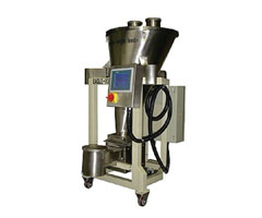 失重秤的料倉的重量是接受計量摔制系統的監視和控制。失重給料摔制系統將根據料倉總成的重量的減少,連續計算出投料暈,并將該投料暈與設定值進行比較,控制螺旋的速度,保證投料罩與設定值相同。投料控制連續工作,直到稱重料倉總成的重量達到預設定的下限設定值。達到下限設定值時,稱重倉上面的加料閥將自動打開,向稱重料倉進行加料,加料系統將保持給料狀態,直到稱重倉總成的重暈達到預設定的上限設定值,此加料系統將關閉,開始新的失重控制周期。