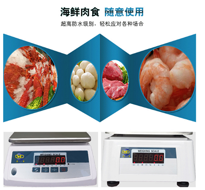本公司的兩面雙顯稱重的電子秤型號為:DW電子秤的量程分為:3kg 6kg、15kg、30kg,可滿足不同稱重場合,秤體為防腐蝕材料,可用于,水產(chǎn),海鮮市場,防水防潮。
