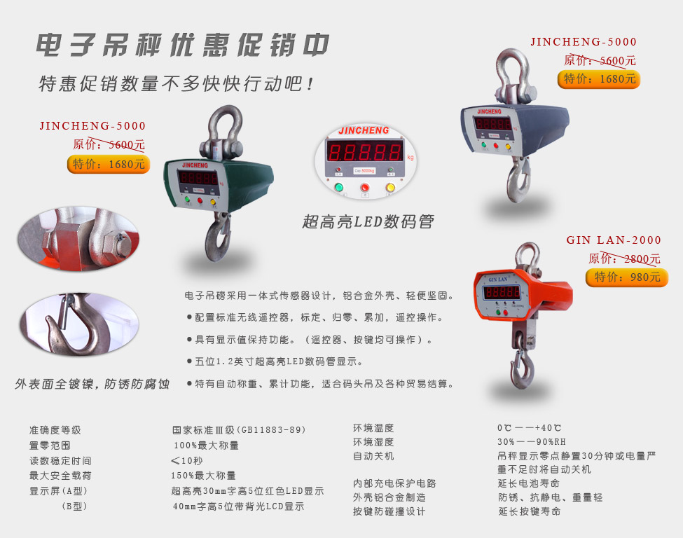 電子吊秤優惠促銷 勁爆價優惠超過團購價,最高三折,數量有限。咨詢:4000217728