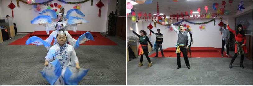 年會中最精彩的部分就是游戲、表演及抽獎環節了。售后四花旦精心組織編排了美麗的舞蹈,展現了亞津年輕團隊的風