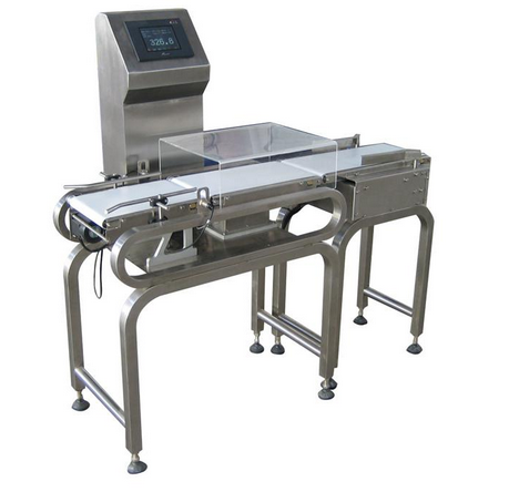 自動分選檢重秤以高速度之動態重量讀取方式檢出生產線上的產品之重量,可以精確的檢測出連續生產線中重量不合格的產品,并依此執行上下線判別或重量自動分選之控制,特別適用于包裝產品中的缺件檢查。包裝產品通過檢重秤稱重檢測,合格的送回原有輸送帶,不合格的予以剔除(或報警停機),并且具有根據設定對產品進行分類和統計、自動提供反饋信號調節修正加料設備、文字顯示故障報警信息、多種圖形統計顯示等功能?晒澥∪肆Α⑻岣咝,避免因包裝過量導致無謂之損失或因重量不足而引起之客戶抱怨,以提升客戶之滿意度,為自動生產線及包裝線上之最佳品檢設備。