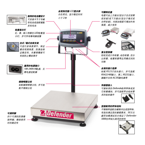 奧豪斯公司全新呈現的Defender 5000系列電子臺秤,擁有靜態稱重、檢重稱重、計件稱重(自動更新)、百分比稱重、動態稱重和顯示保持等功能,可被廣泛使用于食品、物流、包裝等領域。高品質的傳感器、堅固的秤體以及性能卓越的儀表,將為您的稱量系統提供集經濟性、可靠性、精確性為一體的最優化解決方案。